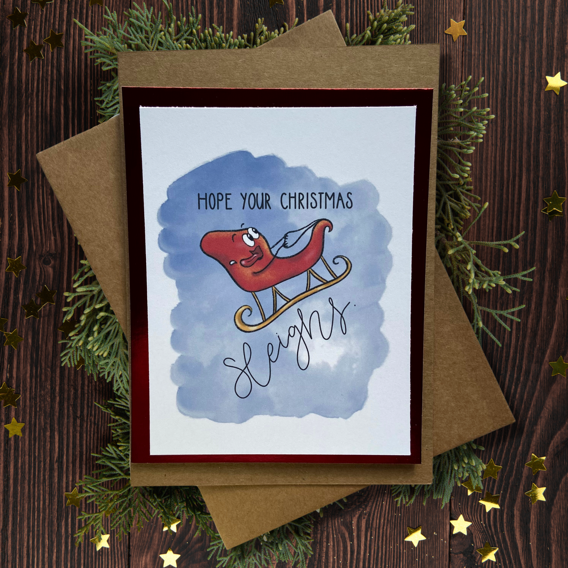 - Assembled on foil cardstock backing and brown kraft folded card